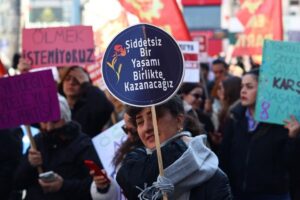 Di meşê de dowîzên wekî “Ji bo Fatma Nur û Hifayê çi bû?”, “Xizanî û şîdet ne qedera me ye”, “Ne sala malbatê, sala têkoşînê; em ji bo xwişkên xwe yên hatine qetilkirin li vir in”, “Ji bo Bahar Taş çi bû? Neşêre, neparêze; faîlan darizîne” û “Kuştina jinan polîtîk e” hatin hilgirtin. Di dema meşê de her tim sloganên “Jin, Jiyan, Azadî” û “Jin dimeşin, têkoşîn mezin dibe” hatin berzkirin. Navên jinên hatine qetilkirin yek bi yek hatin xwendin û girseyê bi yek dengî bersiva “Li vir e” da.