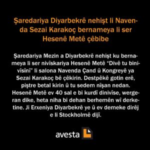 Weşanên Avesta diyar kir ku Şaredariya Mezin a Diyarbekrê nehiştiye ku bernameya li ser nivîskariya Hesenê Metê “Divê tu binivisînî” li salona Navenda Çand û Kongreyê ya Sezaî Karakoç bê çêkirin.