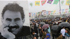 Posterê Rêberê PKKê Kurd Abdullah Ocalan ji aliyê girseyê ve hate vekirin.