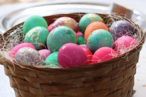 Di pîrozbahiyan de hêk tên boyaxkirin û nanê taybet tê belavkirin. Li gorî baweriya Xiristiyantiyê, hêkên boyaxkirî û nan sembola jiyaneke nû û bereketiyê ne. Wateya “El-Qiyame” jî serkeftina jiyanê ya li hemberî mirinê û serkeftina hêviyê ya li dijî êş û janê ye.